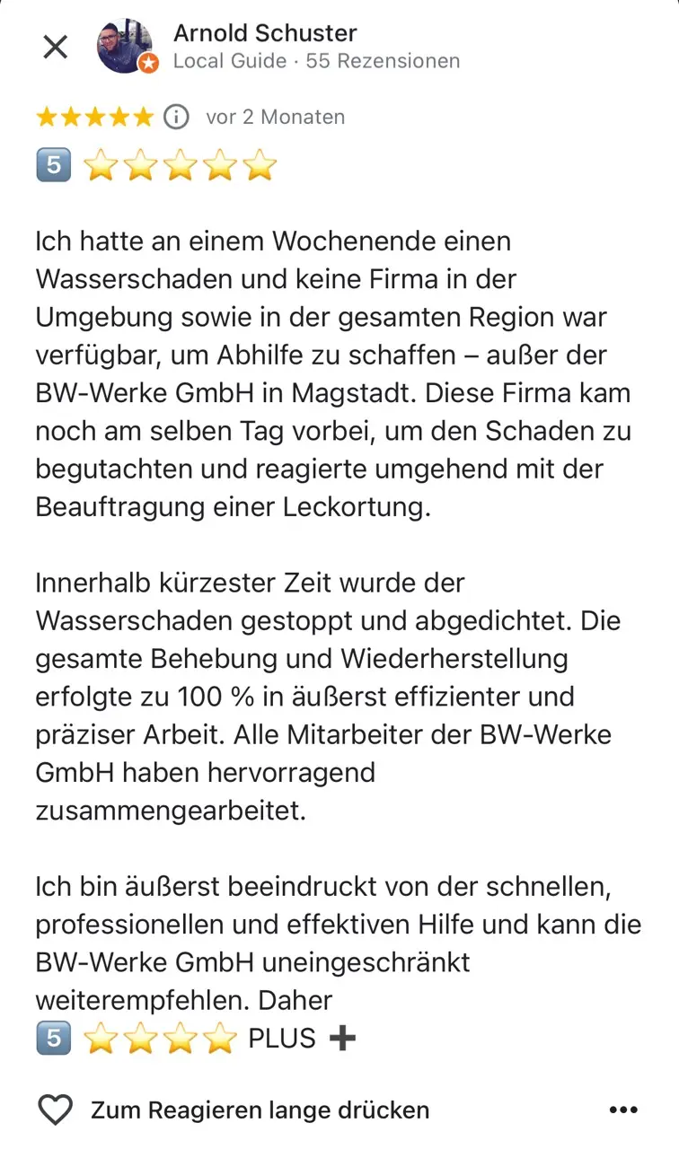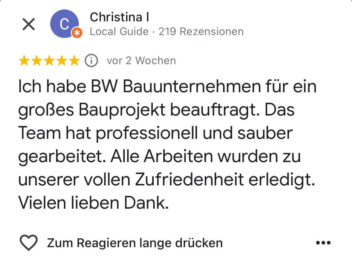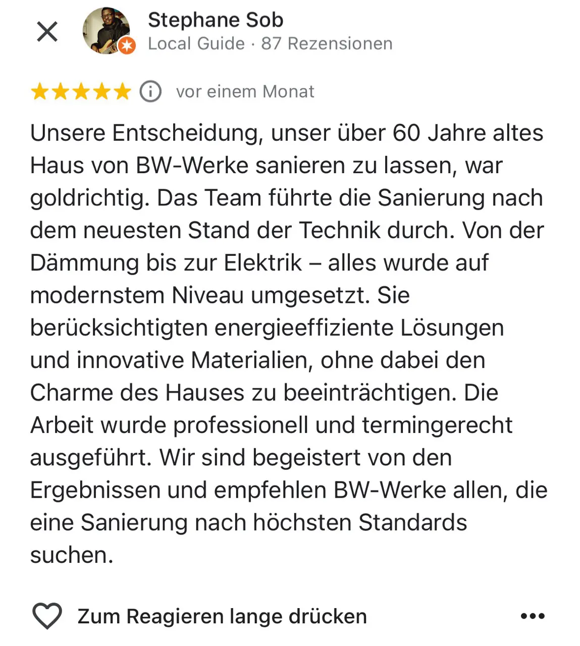 Alle Gewerke werden umfassend durch BW-Werke GmbH betreut.