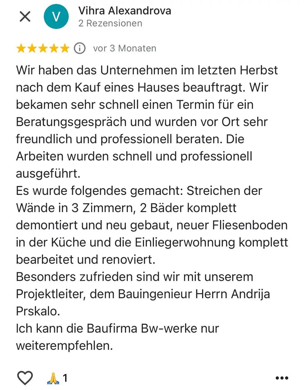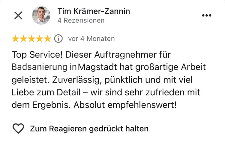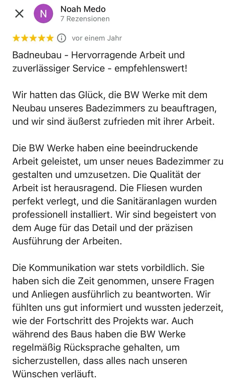 Zahlreiche Weiterempfehlungen bezeugen von der herausragenden Preis-Leistung in der Badsanierung.