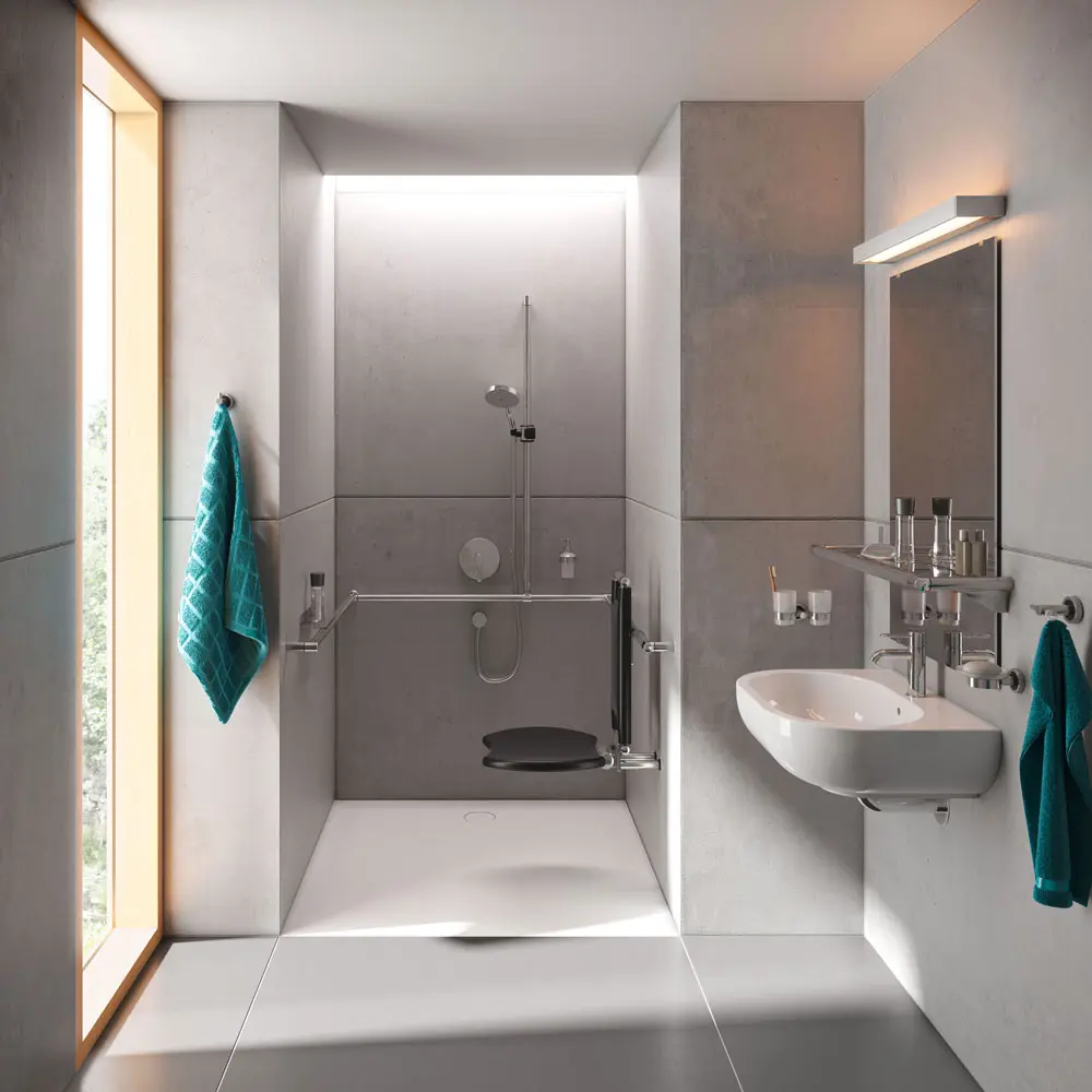 Höchste Rutschsicherheit so wie Haltegriffe oder ein klappbarer Sitz für die Dusche stehen Ihnen ebenso zur Auswahl.